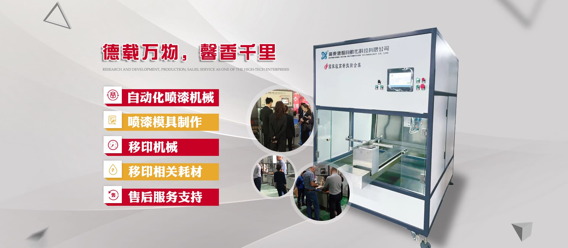 德馨科技創(chuàng)立以來,以改變噴印業(yè)傳統(tǒng)手工生產(chǎn)模式為目標(biāo),產(chǎn)品開發(fā)制造堅持以“環(huán)保、智能”為理念,為企業(yè)的生產(chǎn)環(huán)境、人力成本、生產(chǎn)效率等提供更為優(yōu)良的服務(wù)和技術(shù)支持。公司研發(fā)產(chǎn)品主要有自動化噴漆機械、噴漆模具制作等;生產(chǎn)銷售移印機械及移印相關(guān)耗材,包括菲林設(shè)計輸出;鋼板制作、移印膠頭制作、定位制作及周邊配件耗材并提供完善的售后服務(wù)支持。